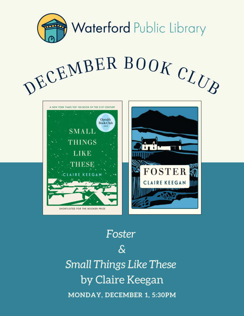 Join us for a discussion of this month’s book selections, Foster and Small Things Like These by Claire Keegan on Monday, December 1 at 5:30 PM. Please register in advance.