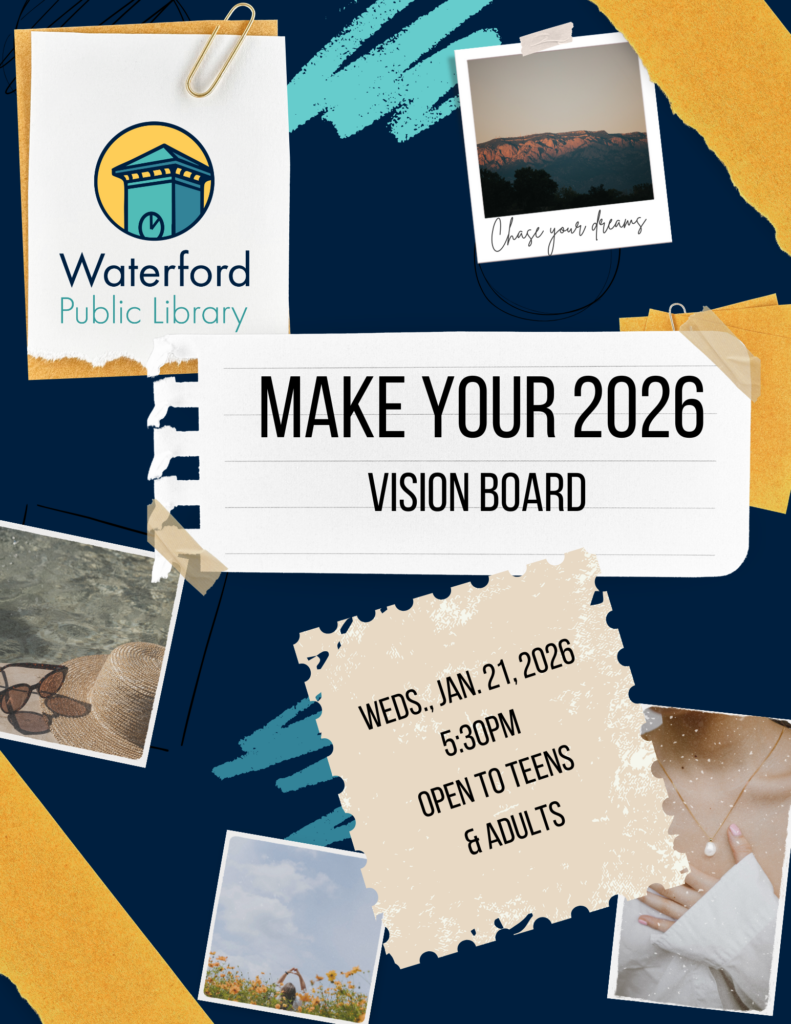 Kick off 2026 with a visual representation of your goals, dreams, and aspirations. We’ll make a collage of images, words, and symbols that reflect the things you want to achieve, acquire, or experience this year on Wednesday, January 21 at 5:30 PM. This event is open to teens and adults.