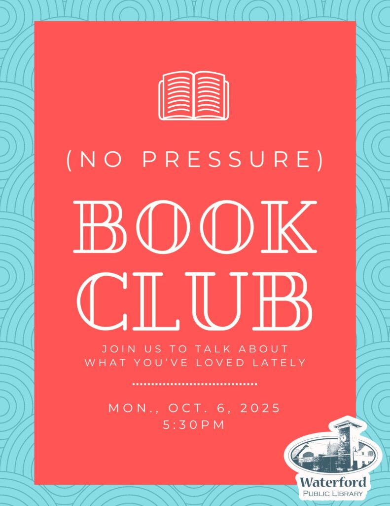 There’s no pressure to read anything specific, just join us to talk about what you’ve been enjoying lately at this No Pressure Book Club on Monday, October 6 at 5:30 PM! No registration is required.