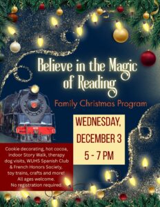 Join us for our annual family Christmas program on Wednesday, December 3 from 5:00 - 7:00 PM! Decorate cookies, have hot cocoa, go on an indoor story … Read More