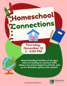 Homeschooling families of all ages who are looking to connect with others are encouraged to attend on Thursday, December 11 from 1:00-2:30 PM. No … Read More