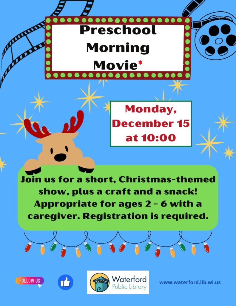 Join us for a short, Christmas-themed show on Monday, December 15 at 10:00 AM, followed by a craft and a snack! Appropriate for ages 2 – 6 with a caregiver.