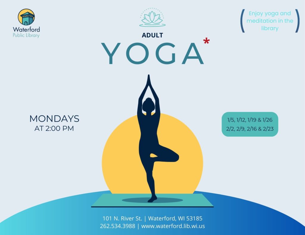 Enjoy the art of meditation and yoga in the library with instructor Rachel Juergens on Monday, January 12 at 2:00 PM. Registration required.
